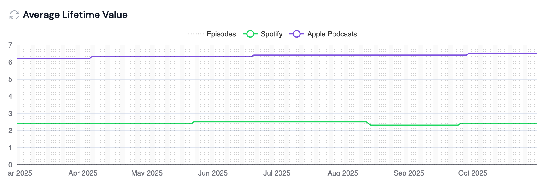 Of course, average lifetime value changes over time. So to understand historical trends and see how this number responds to editorial decisions, marketing campaigns, and release frequency, you'll need to run this calculation for every single calendar day your show has been in market.